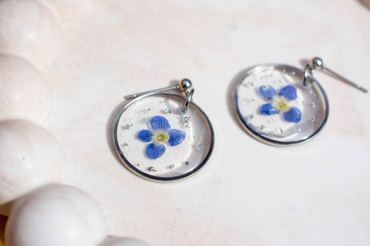 Boucles d'oreilles fleur séchée bleue