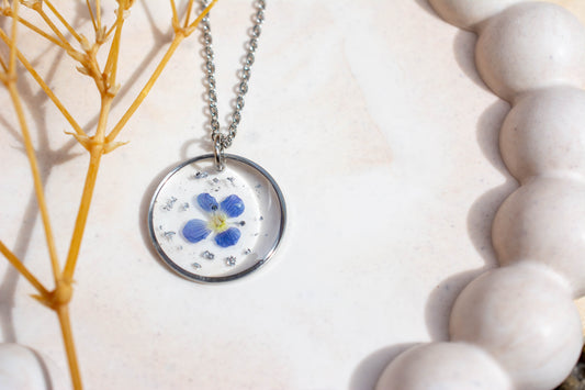 ÉpuiséCollier fleur séchée bleue