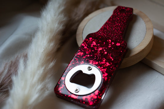 Décapsuleur rouge - dégradé de paillettes rouges