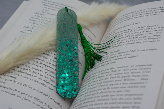 Marque-page arrondi vert - dégradé de paillettes vertes