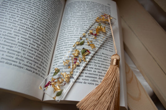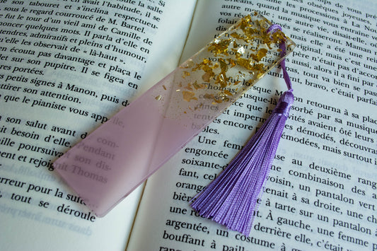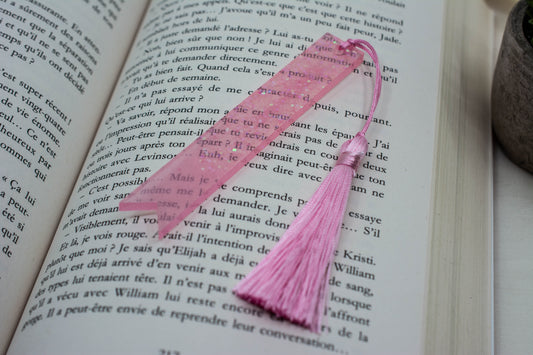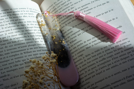 Marque-page arrondi rose - noir / transparent feuilles dorées