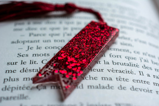 Petit Marque-page rouge - dégradé de paillettes rouges