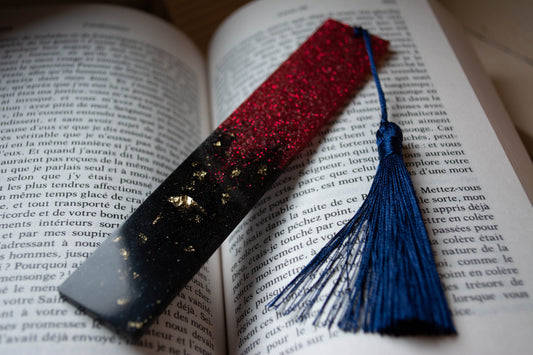 Marque-page noir et rouge - paillettes rouges - noir doré