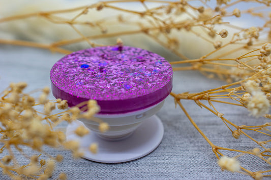 Poignée de téléphone ronde rose - dégradé de paillettes roses
