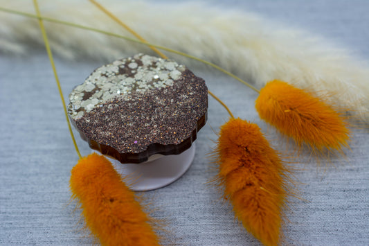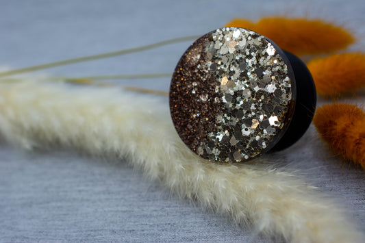 Poignée de téléphone ronde marron - dégradé de paillettes marrons et dorées