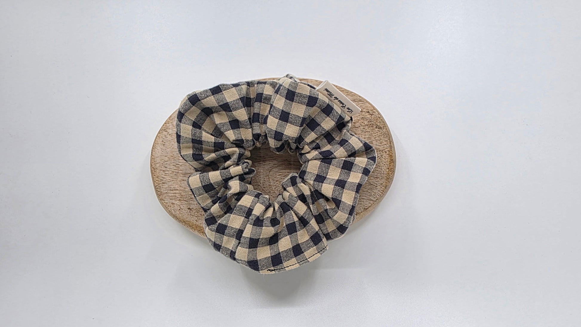 Chouchou Rustique en coton beige/bleu à motif vichy.