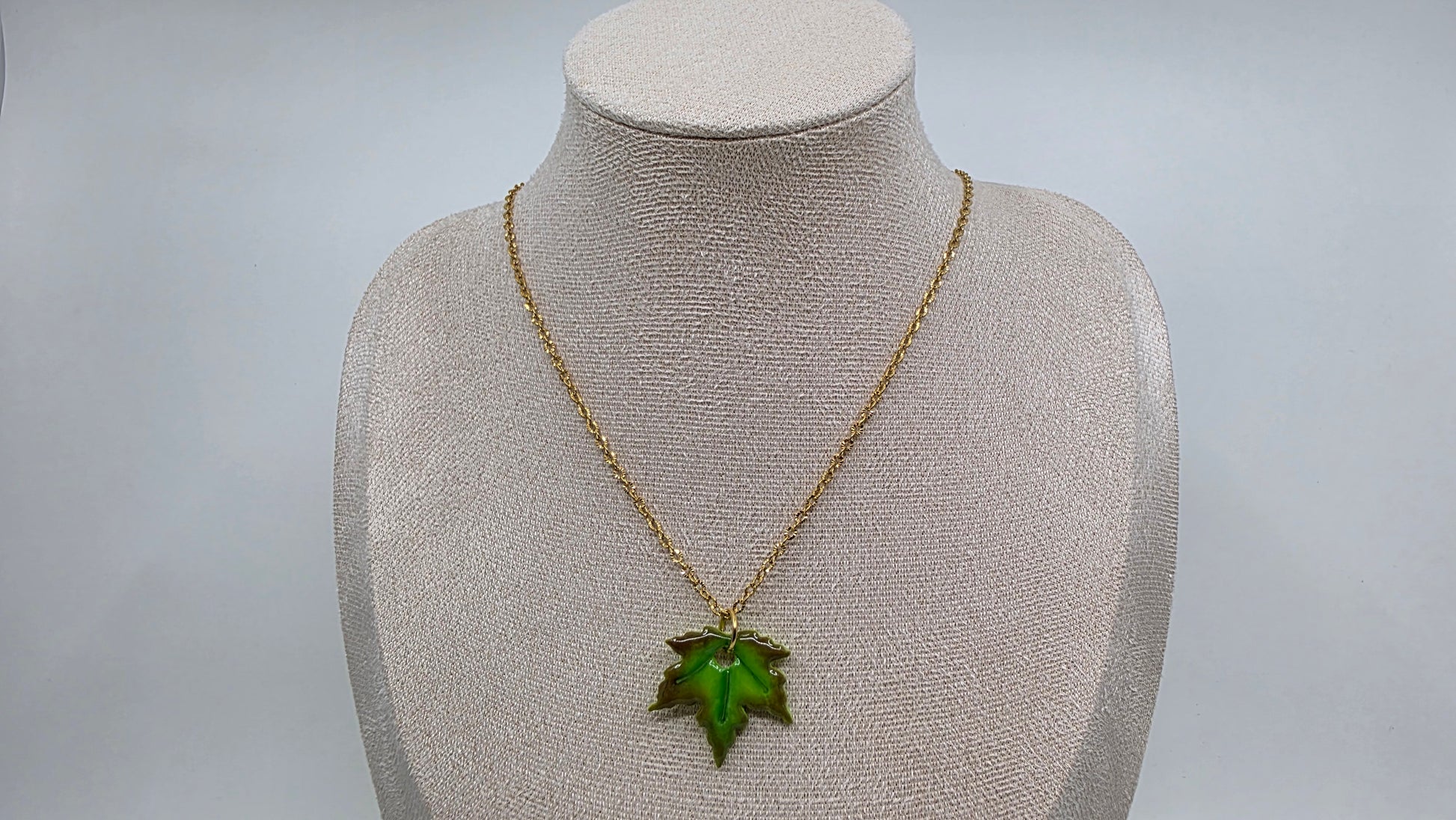 - Design Nature : Pendentif en forme de feuille d'érable, rehaussé d'une finition en émail vert dégradé et d'un contour doré.