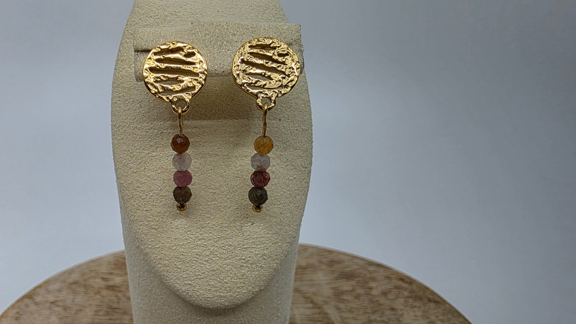 - Pierres Fines : Perles de tourmaline multicolore naturelles (pastels). Chaque pierre apporte une nuance unique.