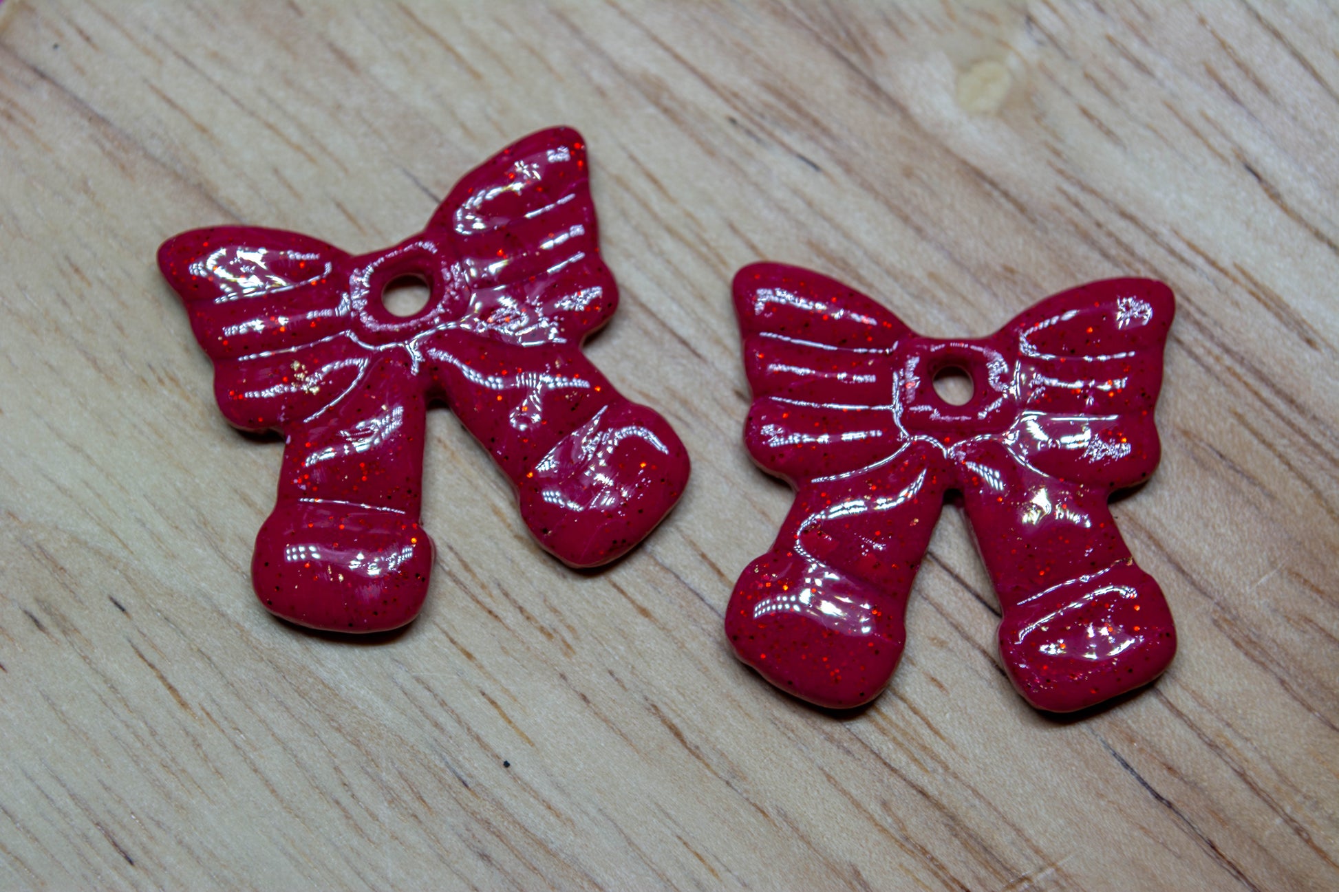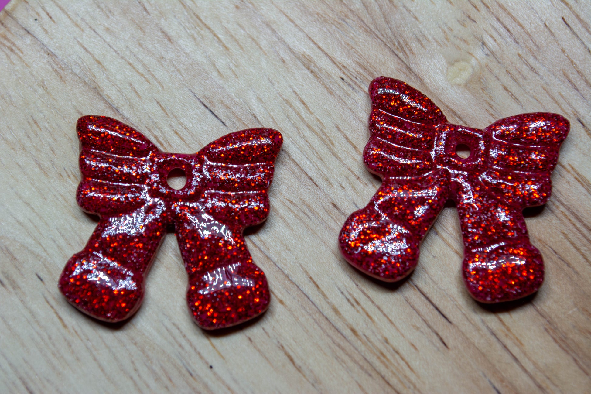 Pampilles Nœud de Noël (par paire) en pâte polymère.