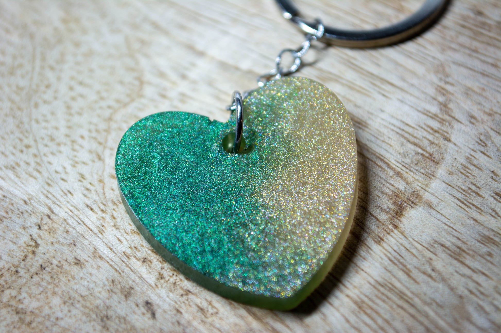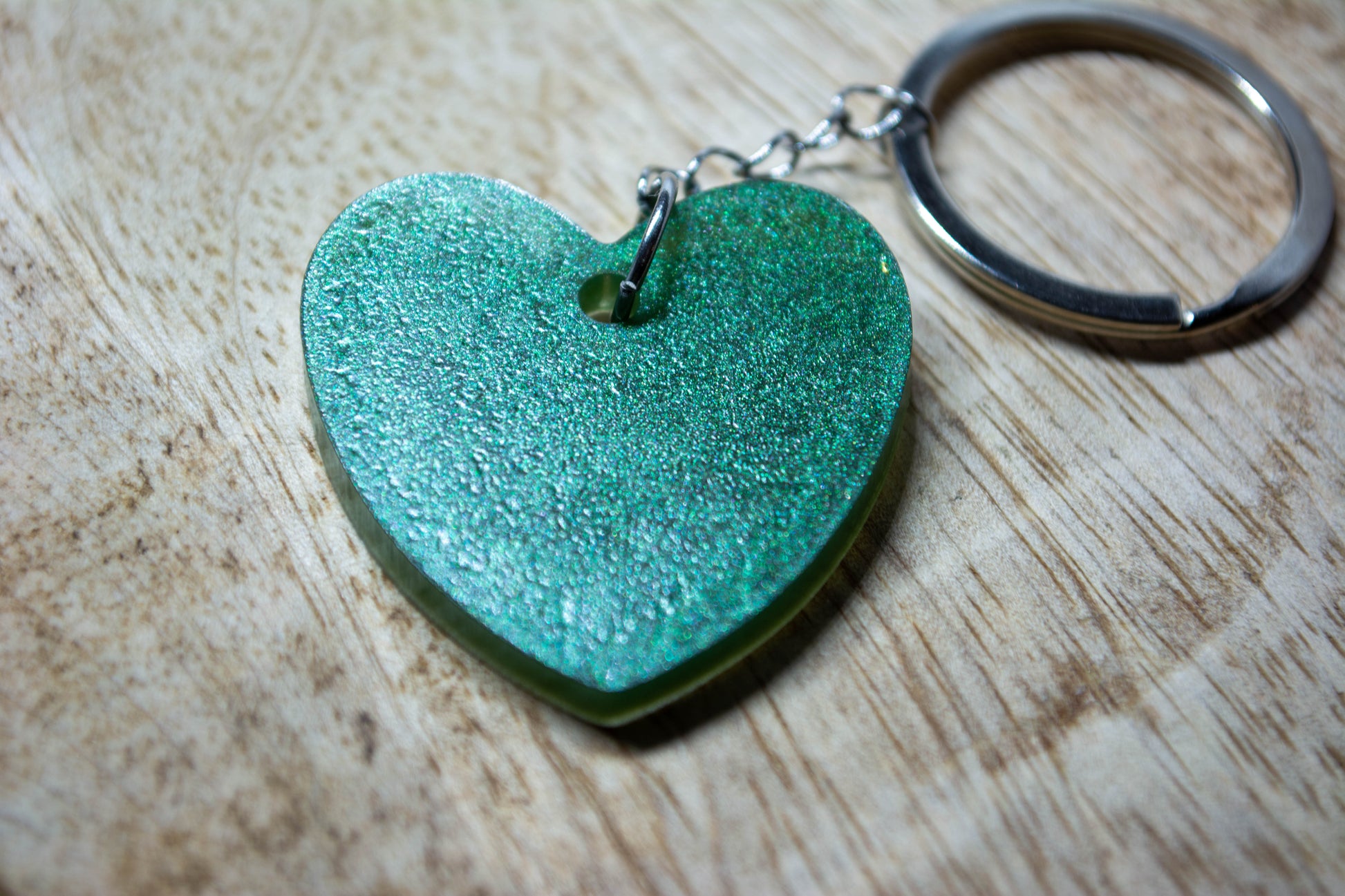 Porte-clés Cœur holographique en résine époxy.
